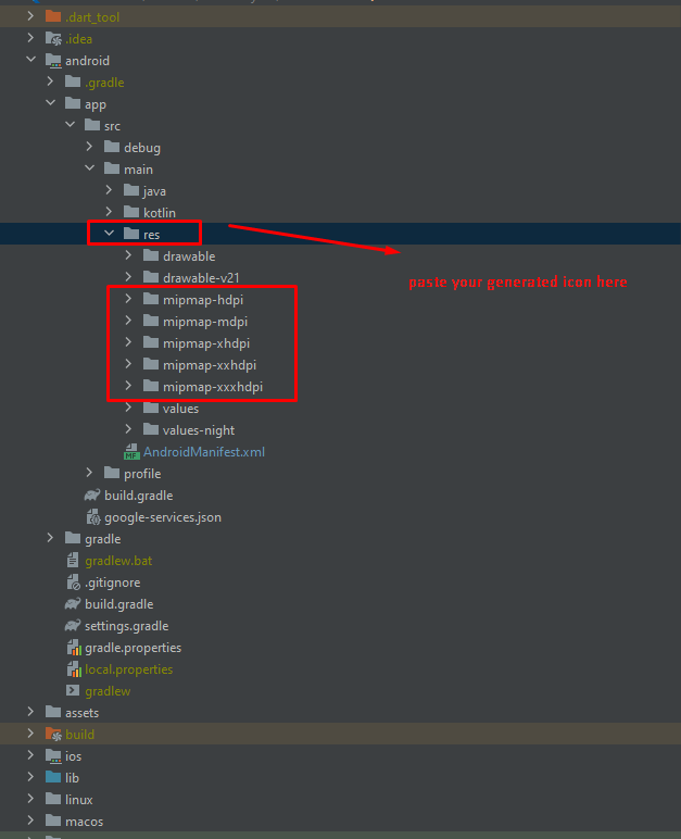 Note: For different type of device we need to add different size of icon. So that you should to need to resize them. You can use https://appicon.co/ platform to generate multiple size icons for android and ios. It will provide you the icon with a correct folder structure.