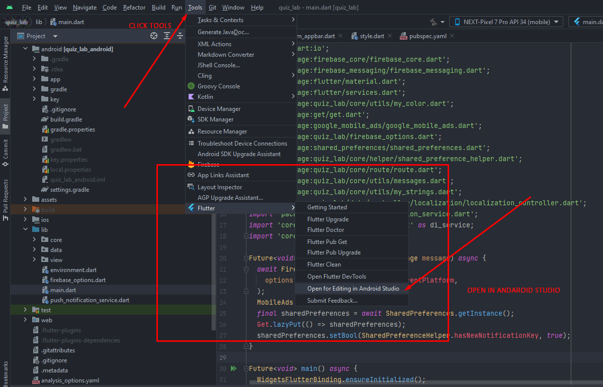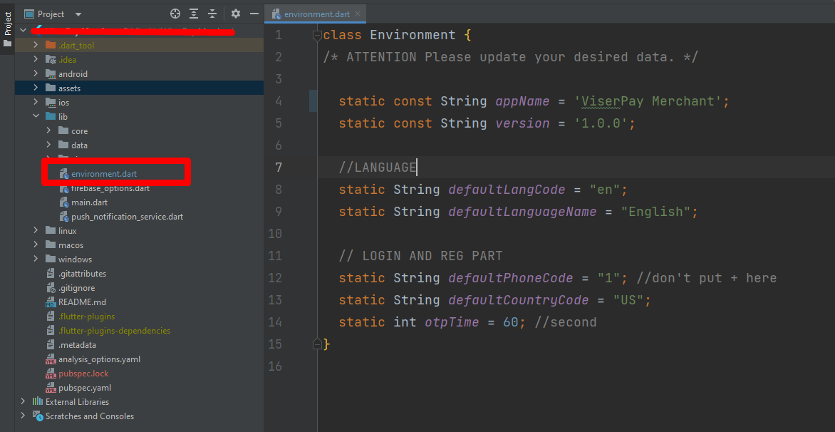 Follow the guidelines in the following link to install the Flutter environment