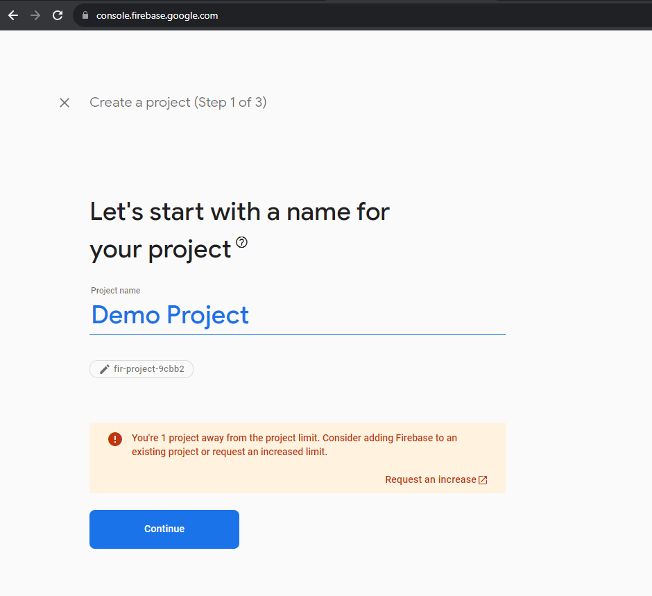 Firebase will take a moment to create your project. Once it's done, you'll be redirected to the project dashboard.