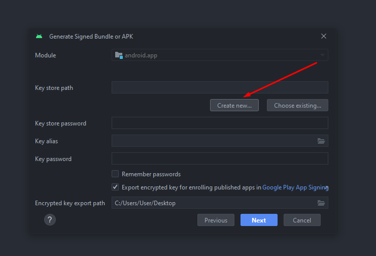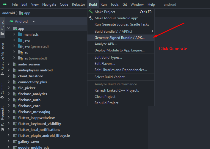 To generate a keystore in Android Studio, follow these steps: